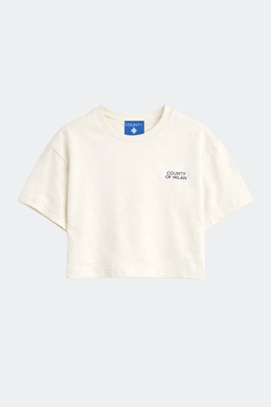 T-shirt in jersey di cotone dal fit confortevole con girocollo. Il design pulito è arricchito da un’applicazione grafica a contrasto sul fronte e sul retro con strass.
