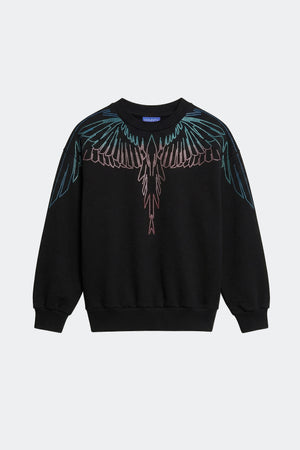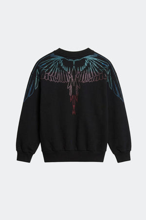 Felpa in cotone dal fit morbido con girocollo e finiture a costine su collo, polsi e fondo. Il design essenziale è impreziosito da un’applicazione grafica con strass sfumati dai toni turchese e fucsia sul fronte, che crea un effetto luminoso e distintivo.