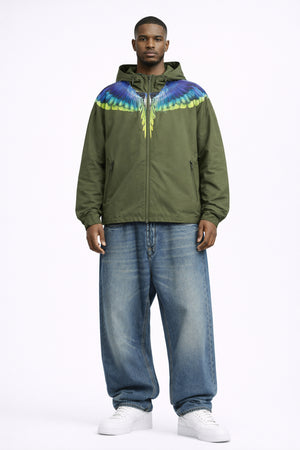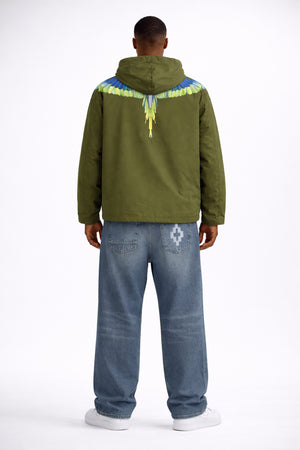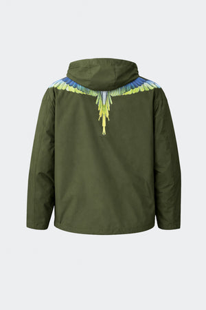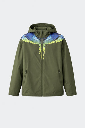 Giacca in nylon con cappuccio e chiusura frontale con zip. Stampa grafica ali iconiche circolare. Polsini e fondo rifiniti per una vestibilità confortevole.