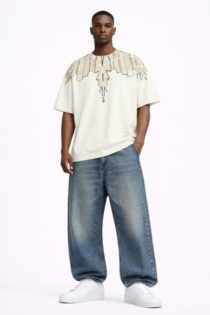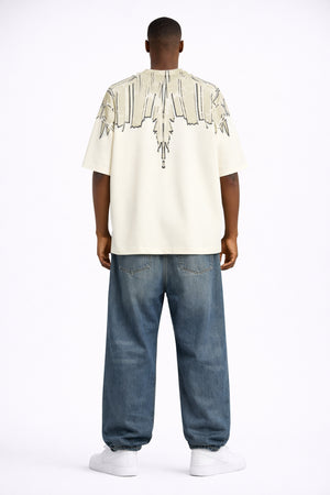 T-shirt in cotone con stampa circolare ali " Sculptural Design" . Vestibilità regular.