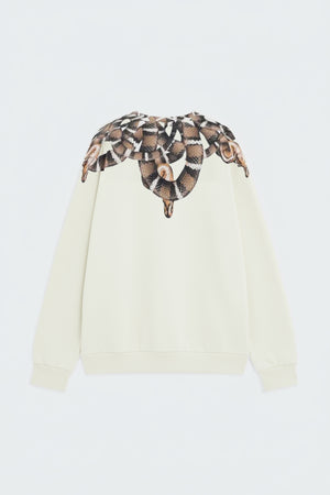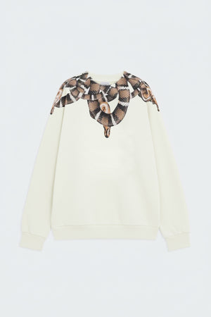 Felpa in 100% cotone dal fit morbido con girocollo e finiture a costine su polsini e fondo. Stampa continua “snake” in tonalità oro posizionata su fronte e retro.