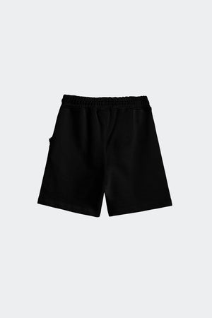 Bermuda dal fit morbido con vita elasticizzata e coulisse regolabile. Il fronte è caratterizzato da un design essenziale e finitura pulita. Il retro mantiene una linea minimal, pensata per il massimo comfort quotidiano. Completano il capo un piccolo dettaglio grafico discreto sul fondo gamba.